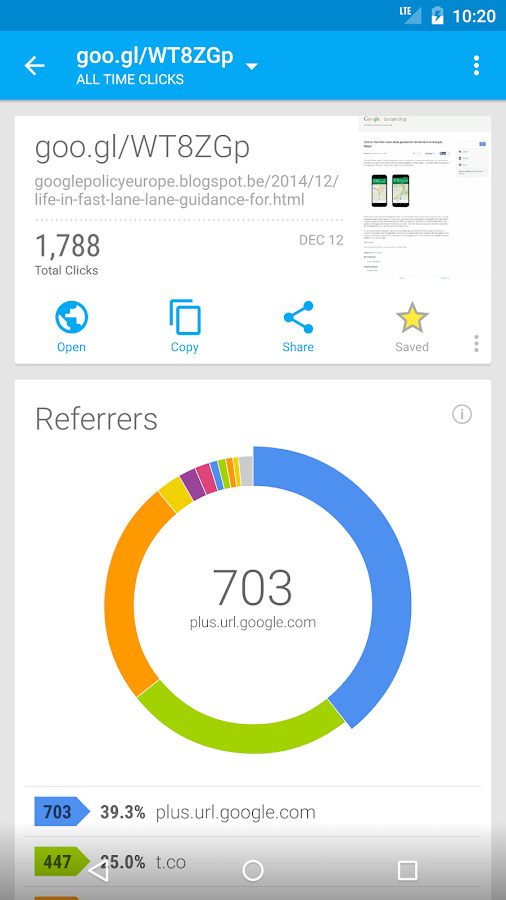 Ciò che non tutti gli utenti di Goo.gl sanno è che, a partire dal marzo del 2014, il servizio è stato reso disponibile anche in versione app, facilitando, così, il suo utilizzo da dispositivo mobile.